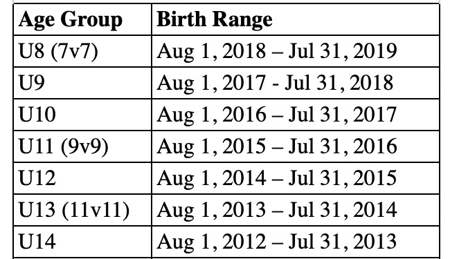 WHAT IS MY GIRL’S SUMMER CUP SOCCER AGE?
